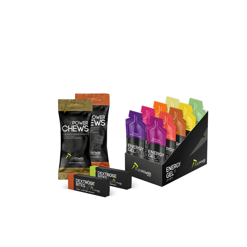Denne pakke er til dig, der vil mere end bare teste én ting ad gangen. Her får du variation i både smag og form, så du kan finde ud af, hvad der fungerer bedst for dig i din træning. Energy Starter Pack er vores mest populære valg blandt nye kunder, fordi den giver dig mulighed for at kombinere gels med chews og dextrose – og dermed gøre energindtag til en mere fleksibel og behagelig del af træningen. Perfekt, hvis du vil opbygge rutine og tryghed, før sæsonen for alvor går i gang.